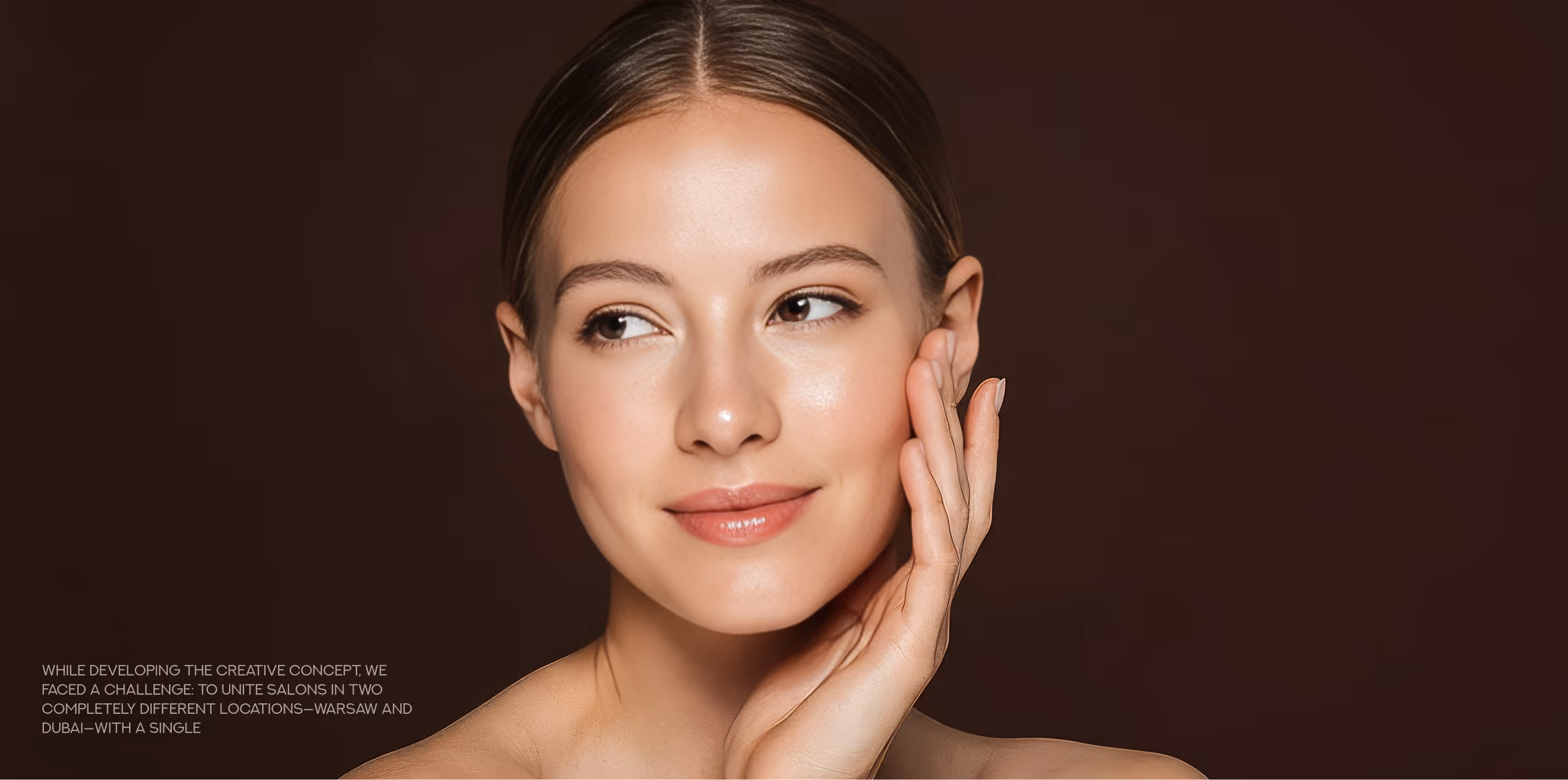 While developing the creative concept, we faced a challenge: to unite salons in two completely different locations—Warsaw and Dubai—with a single theme. That's how the idea came about: firstly, one city lacks sun, while the other has an infinite amount. Secondly, the design of the space itself already evoked warm themes: the salon interior features rounded walls and a light interior